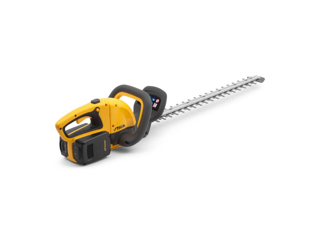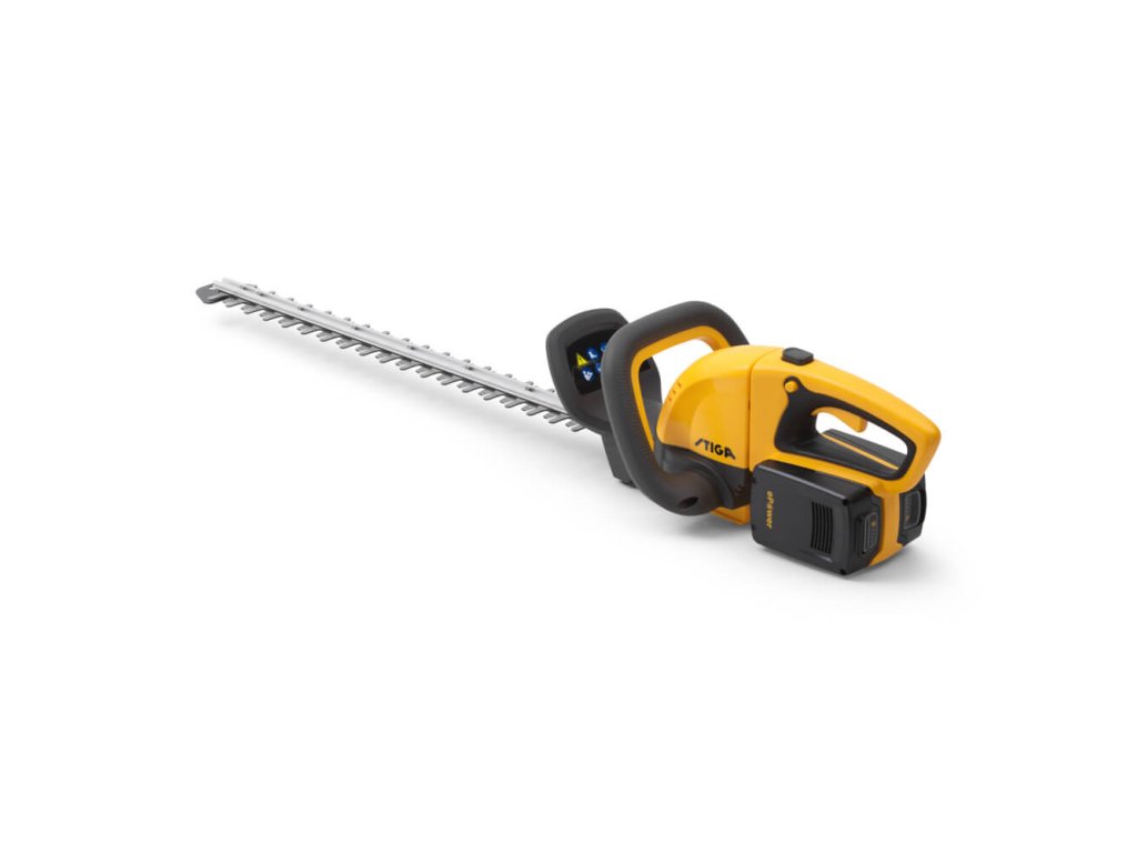 Více výkonu pro stříhání živých plotů! Akumulátorové nůžky Stiga na živý plot s napětím 2x20 V, s 30mm otvorem zubů pro středně silné větve a s nízkým až nulovým namáháním paží.